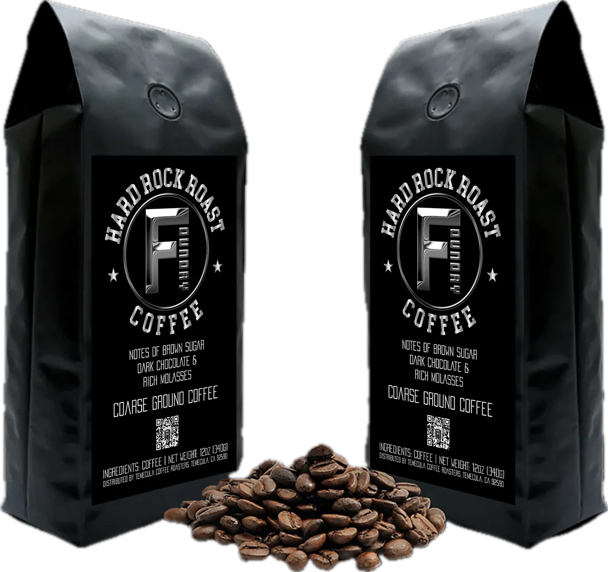 Hard Rock Roast Foundry Coffee (2 Bags $20): Enjoy 2 12oz Bags of “Coarse Ground Coffee” with notes of Dark Chocolate, Brown Sugar, and Rich Molasses - Bold, Dark, and Relentless. Roasted to Fuel Late Nights and Loud Mornings.