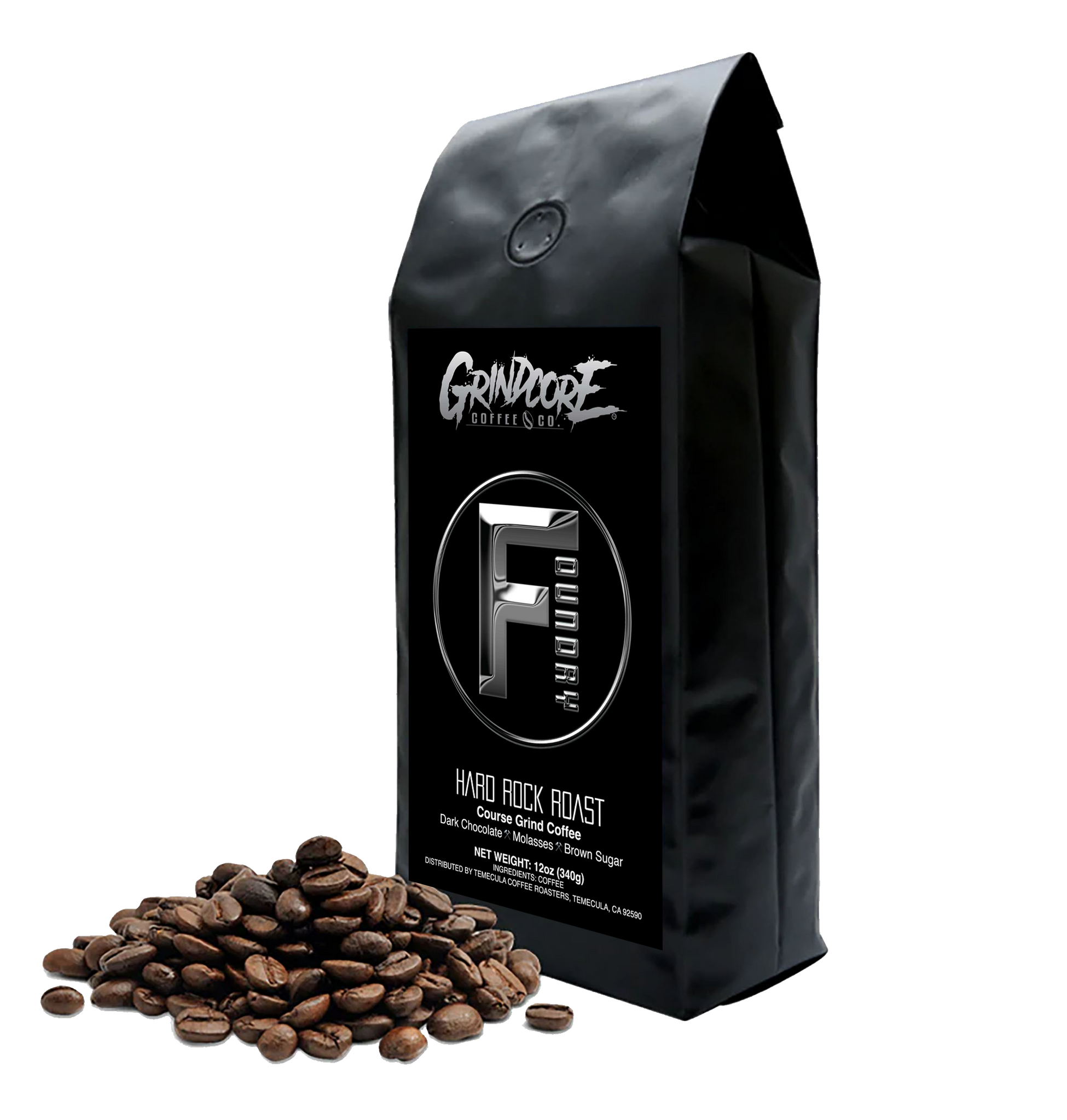 Hard Rock Roast Foundry Coffee (12oz Bag): Coarse Grind Coffee with nodes of Dark Chocolate, Molasses, Brown Sugar. Dark, Rich & Relentless - roasted to fuel late nights and loud mornings. A bold-batch brew for those who live life turned up. ** Includes 2 Foundry Coffee Cups!